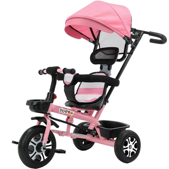 - Комплектация: велосипед — 1 шт., родительская ручка — 1 шт., крыло — 1 шт., складной тент — 1 шт., корзина — 2 шт., подставка для ног — 1 шт., велосипедный звонок — 1 шт.
