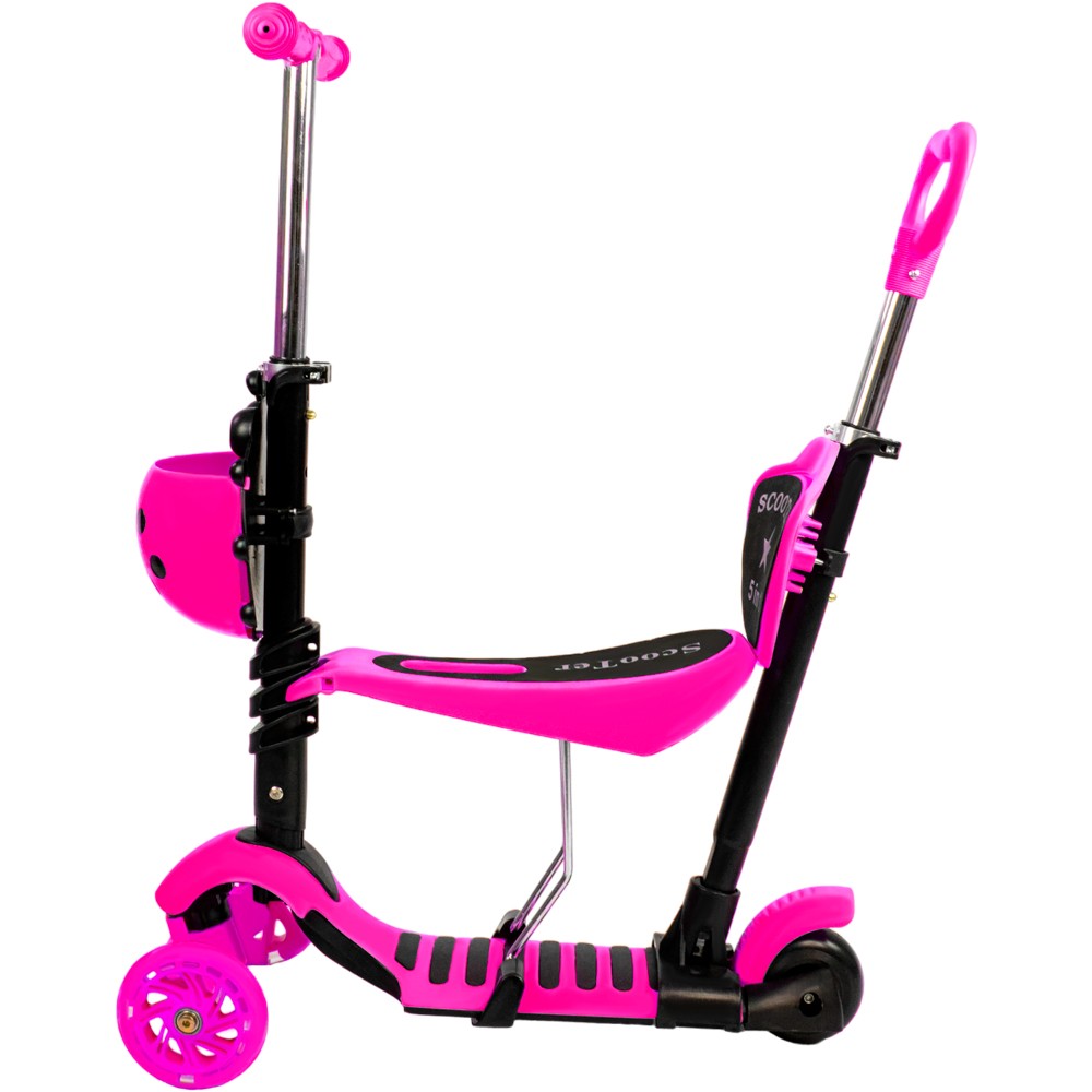 - Комплектация: дека, руль, корзина, сидение, спинка сидения, подставка, родительская ручка, крепления