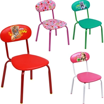 Материалы:металл окрашенный, фанера, поролон, пластмасса, ткань (замша) или винилискожа.для детей от 1.5 до 3 лет.Мягкое сиденье и спинка. Устойчивая конструкция. Яркие рисунки, обивка спинки и сиденья представлена в ассортименте.