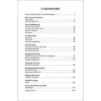 Автор: Константин Симонов, Анатолий Митяев, Андрей Платонов, Михаил Шолохов, Радий Погодин, Леонид Пантелеев, Лев Кассиль, Алексей Толстой, Владимир Железников, Константин Паустовский
