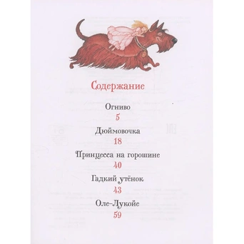 В сборник вошли известные и увлекательные сказки известного датского писателя Ганса Христиана Андерсена: «Дюймовочка», «Гадкий утенок», «Огниво», «Оле-Лукойе», «Принцесса на горошине».