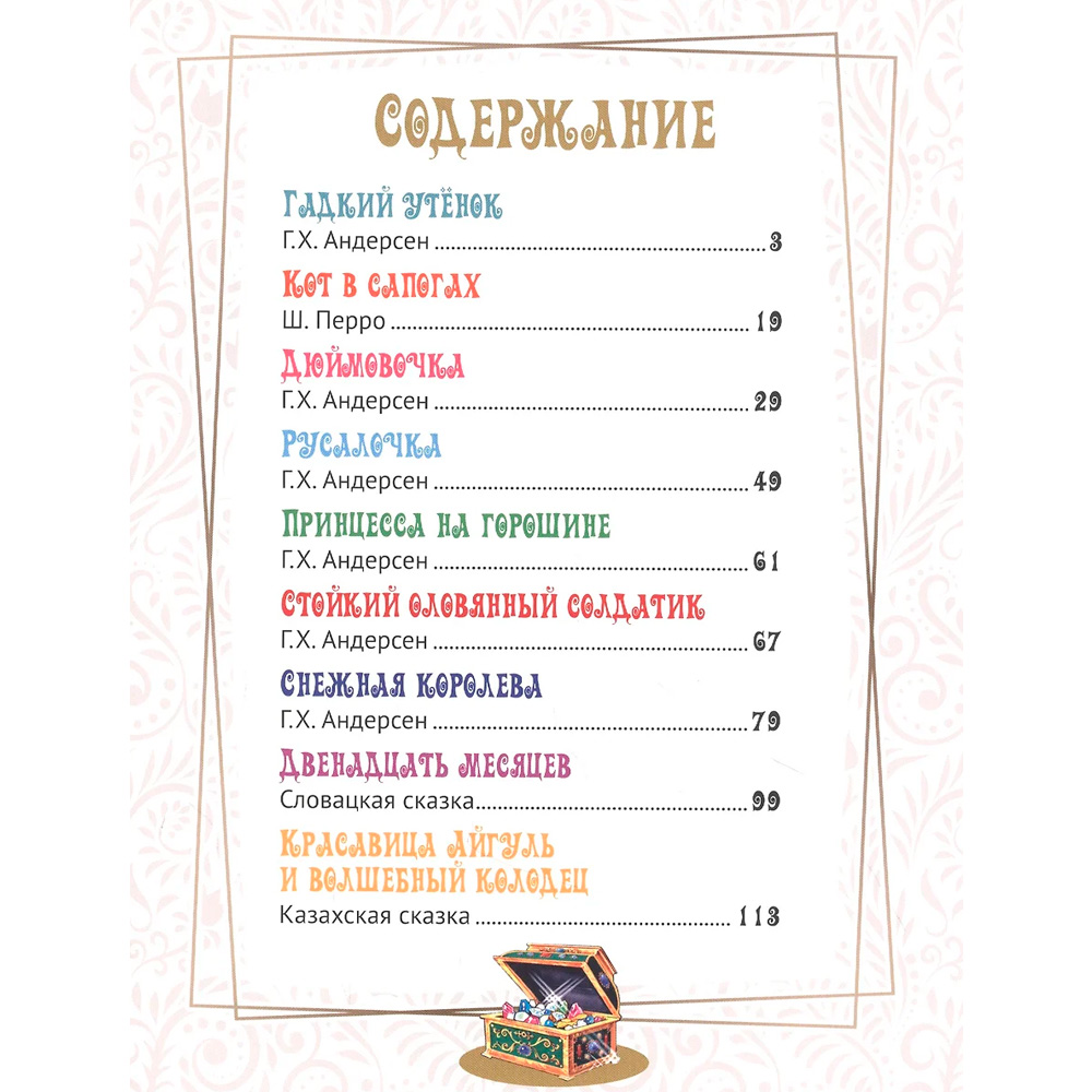 • В сборник вошли известные и увлекательные сказки, знакомые и любимые с детства: произведения Ганса Христиана Андерсена, Шарля Перро и народные сказки.