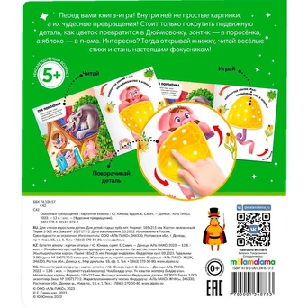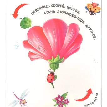 - на каждом развороте — добрый стишок и вращающийся элемент