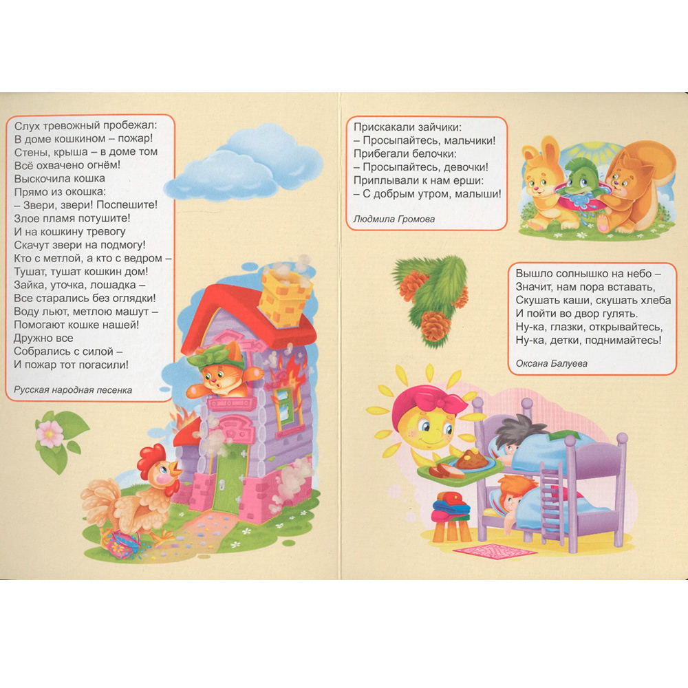 Ярко проиллюстрированная книжка-картонка содержит весёлые и познавательные потешки для малышей.