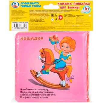 Книжка-игрушка для ванной поможет разнообразить купание. Книжка поможет развлечь малыша во время купания. Она содержит замечательные стихи Агнии Барто, а также яркие красочные иллюстрации, которые привлекут внимание ребенка. Непромокаемые страницы выполнены из безопасных экологически чистых материалов, благодаря чему ее можно брать с собой в ванную комнату и читать во время купания. Если нажать на страничку, то книжка запищит. Такая книжка-пищалка порадует ребенка и поможет разнообразить купание.