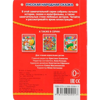 Интересная сказка понравится малышам, а красочные иллюстрации сделают процесс чтения более веселым и увлекательным. Сказки - прекрасные произведения, славящиеся образным рядом, богатым языком и запоминающимися картинами. Дети любят сказки, ведь в них добро всегда побеждает зло, а истории всегда хорошо заканчиваются. Ваш малыш вместе со сказочными героями перенесется в волшебный мир сказок. Сказки - это и уроки доброты, милосердия, справедливости. Они учат детей проявлять житейскую мудрость, отличать добро от зла и помогут формировать другие положительные качества. Читать книги детям полезно с самого раннего возраста. Это стимулирует их воображение, позволяет успокоить и разнообразить досуг.