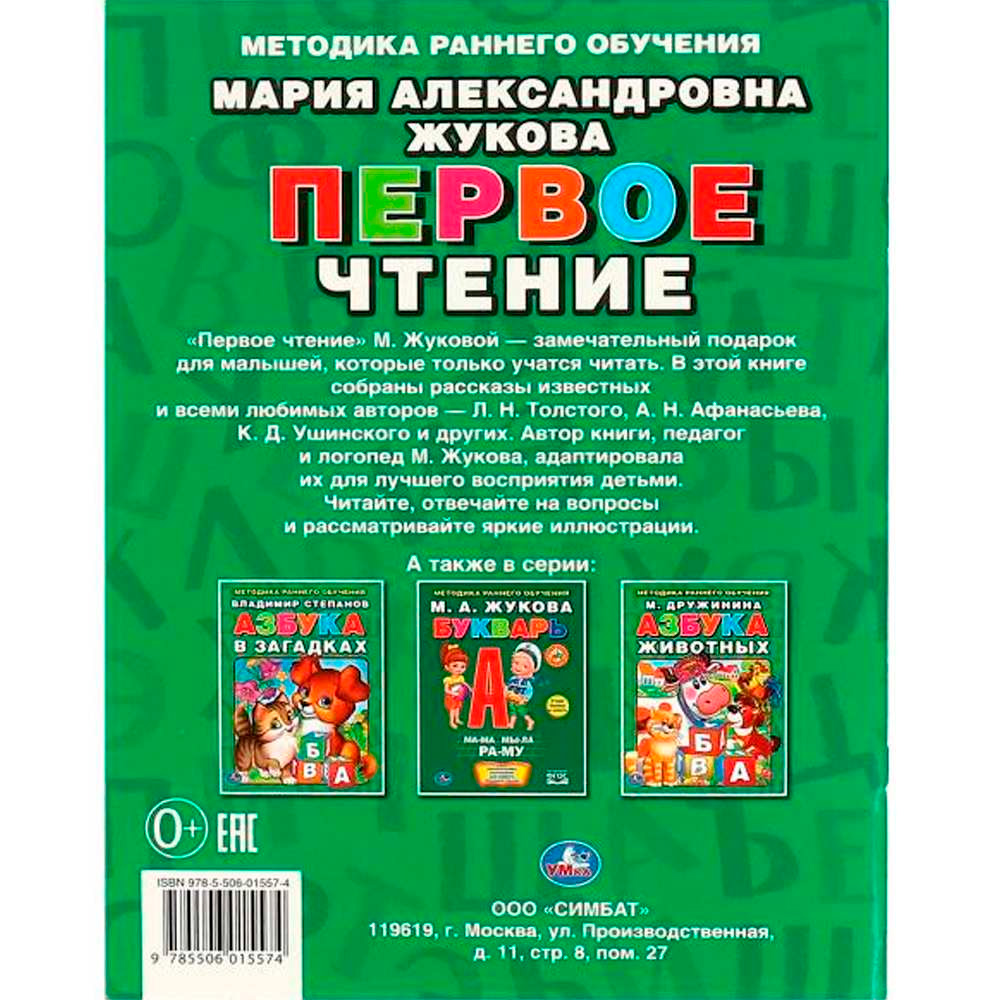 "Первое чтение" М.Жуковой - замечательный подарок для малышей, которые только учатся читать. В этой книге собраны рассказы известных и всеми любимых авторов - Л. Н. Толстого, А. Н. Афанасьева, К. Д. Ушинского и других. Автор книги, педагог и логопед М. А. Жукова, адаптировала их для лучшего восприятия детьми. Книжка "Первое чтение" М. Жуковой станет первым пособием для обучения ребёнка. На страницах он найдёт красочные картинки, короткие рассказы и вопросы к ним. Научившись читать, ребёнок легко ответит на вопросы и сможет заниматься самостоятельно. Для оформления используются большие, яркие картинки, сделана из плотной мелованной бумаги. Развивает речевые навыки, память и станет хорошим помощником в школе.