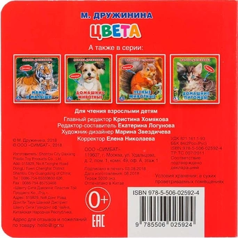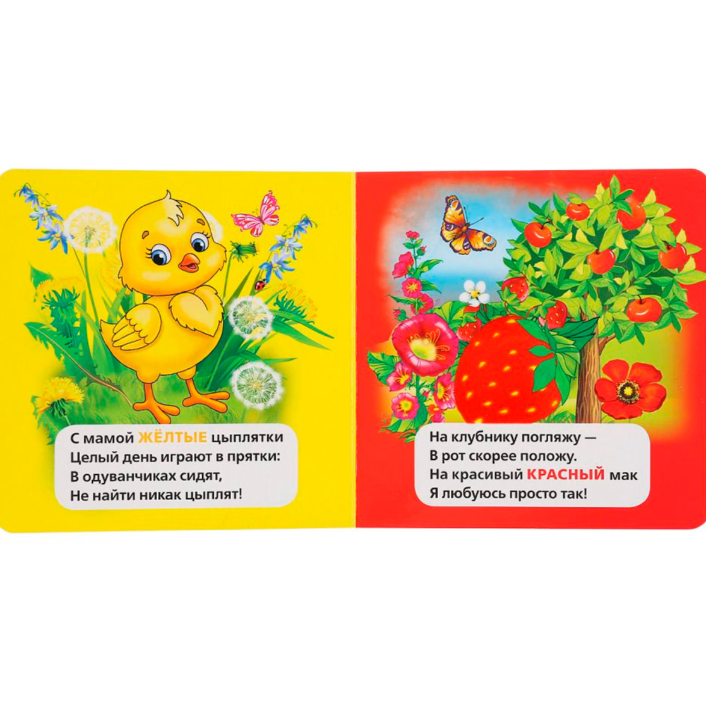 Яркая, оригинальная книжка содержит веселые стихи, красочные картинки и тактильный материл для развития мелкой моторики - малыши смогут погладить животных и послушать стихи о них. Это красочное издание познакомит ребенка с различными цветами. Чтение способствует развитию образного мышления и фантазии, побуждает к действиям, учить этикету и дает первые базовые понятия и сведения об окружающем мире.