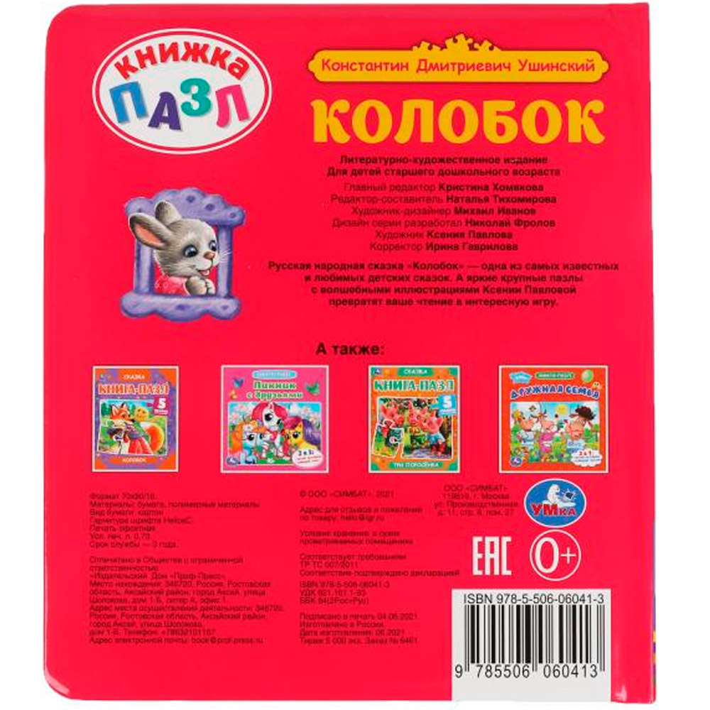 Книга-пазл «К. Д. Ушинский. Колобок» полезный подарок для детей дошкольного возраста. Малышам будет интересно и весело листать книжку, рассматривая яркие картинки, слушать сказку про колобок, а также собирать пазл.