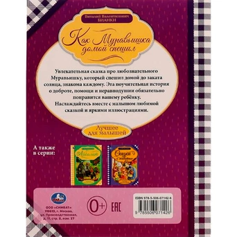 В издании представлена история о Муравьишке, которых отправился путешествовать, а потом долго искал дорогу в свой родной муравейник.