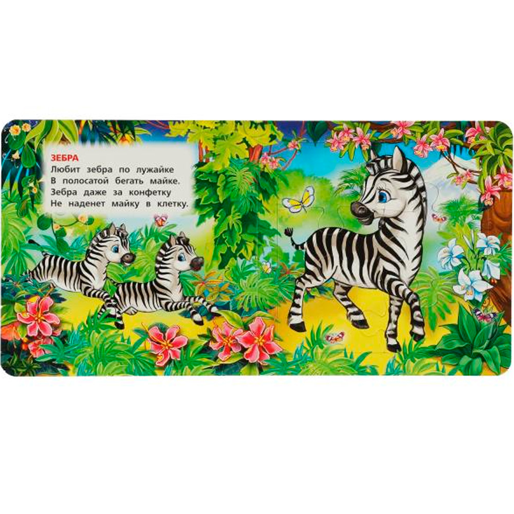 Ярко проиллюстрированная книжка-картонка с милыми иллюстрациями содержит занимательные истории и пазлы, которые необходимо собрать, чтобы получилась цельная картинка.