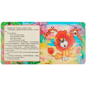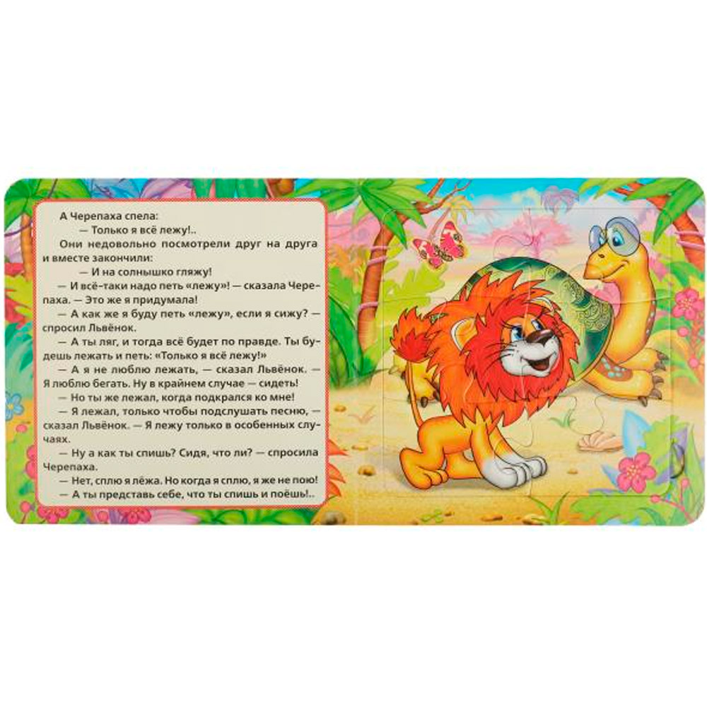 Ярко проиллюстрированная книжка-картонка с милыми иллюстрациями содержит занимательную сказку и пазлы, которые необходимо собрать, чтобы получилась цельная картинка.