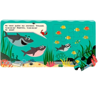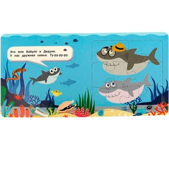 Ярко проиллюстрированная книжка-картонка с милыми иллюстрациями содержит занимательные истории и пазлы, которые необходимо собрать, чтобы получилась цельная картинка.