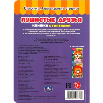 На каждой странице у героев на месте глаз - прорези, на последней странице - пластиковые глазки с подвижными зрачками.