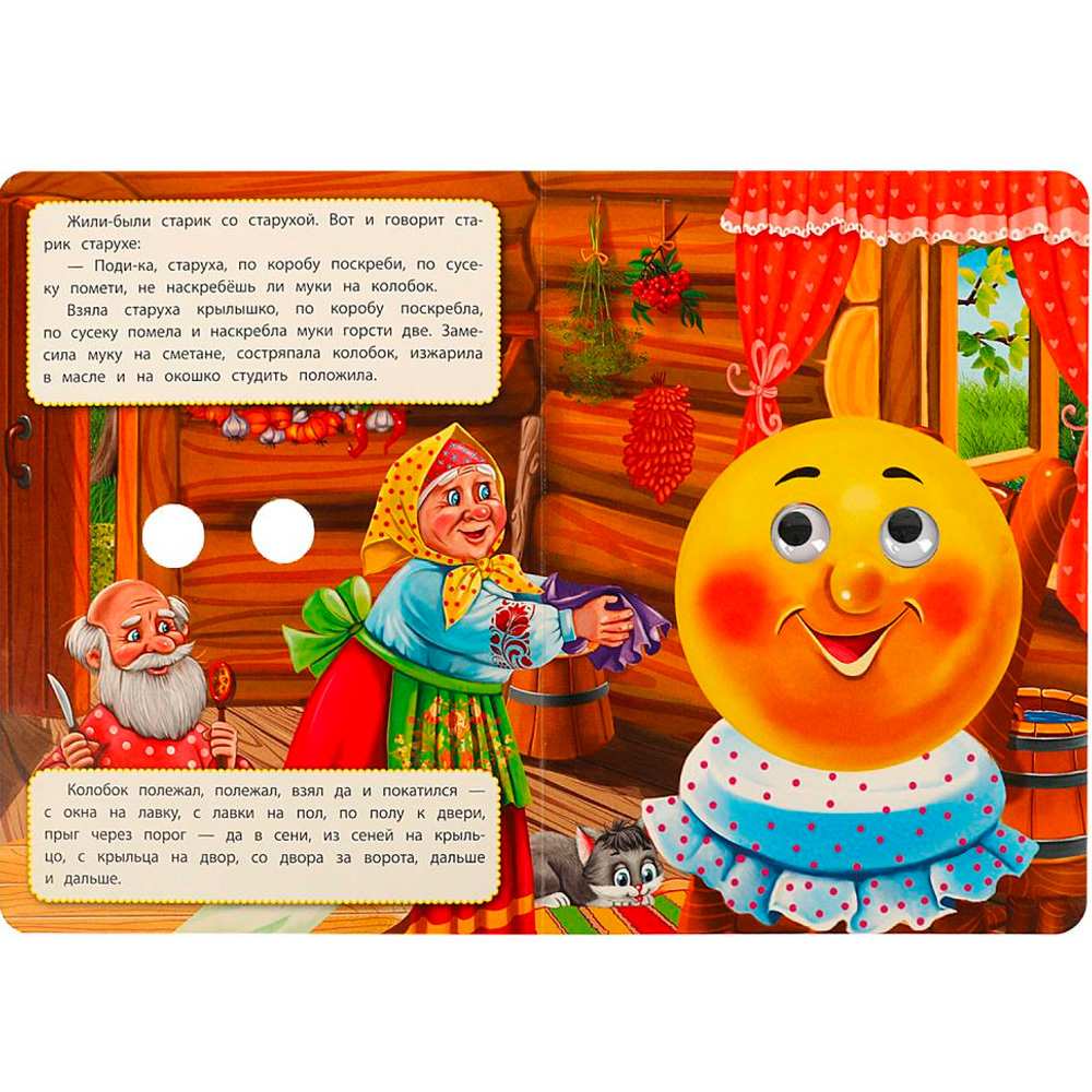 На каждой странице у героев на месте глаз - прорези, на последней странице - пластиковые глазки с подвижными зрачками.
