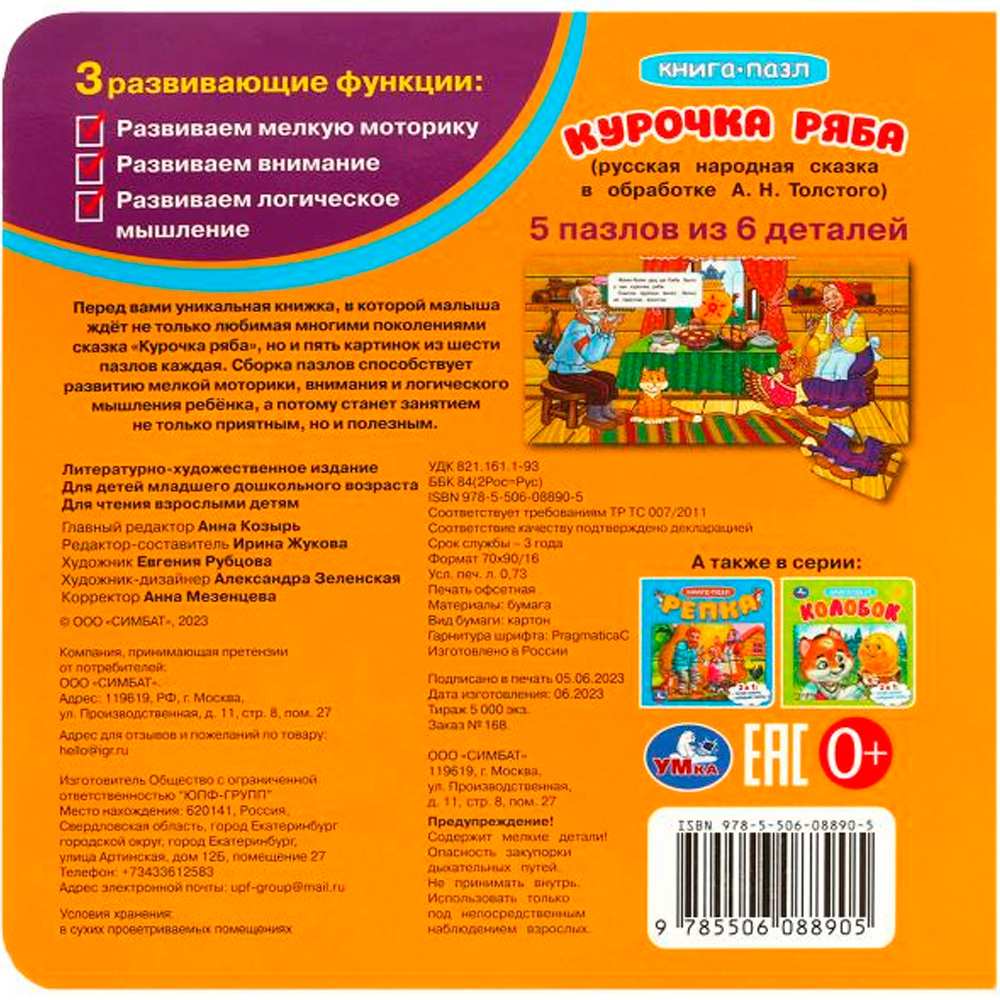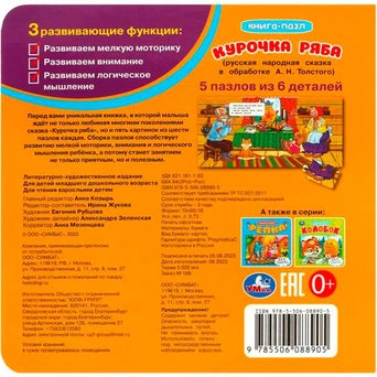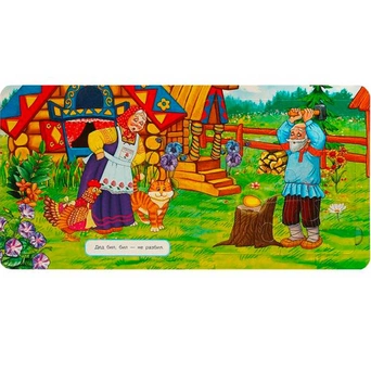 Ярко проиллюстрированная книжка-картонка с милыми иллюстрациями содержит народную сказку и пазлы, которые необходимо собрать, чтобы получилась цельная картинка.