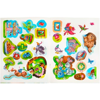Чтобы разнообразить чтение, яркие картинки малышу предлагается дополнить наклейками.