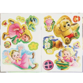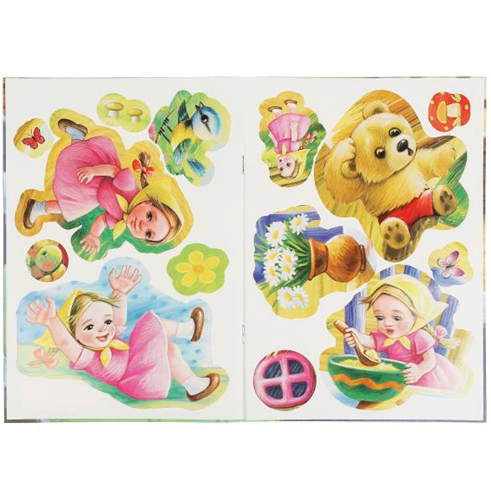 Малыш сможет сам поучаствовать в сюжете при помощи цветных наклеек.