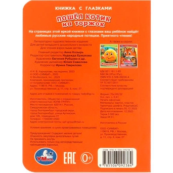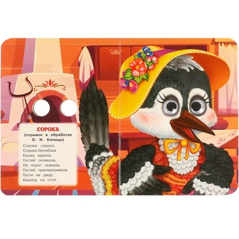 На каждой странице у героев на месте глаз - прорези, на последней странице - пластиковые глазки с подвижными зрачками.