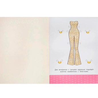 - нужно вырезать куклу и наряды для нее, а потом куклу можно наряжать - одежда крепится при помощи специальных держателей;