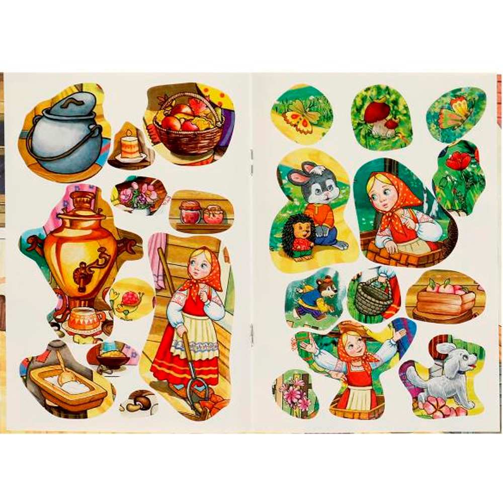 Малыш сможет сам поучаствовать в сюжете при помощи цветных наклеек.