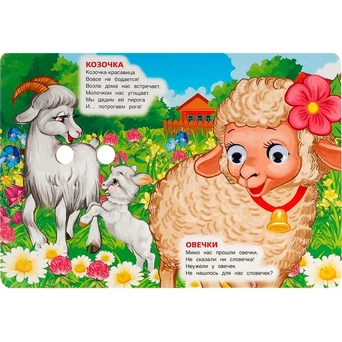 На каждой странице у героев на месте глаз — прорези, на последней странице — пластиковые глазки с подвижными зрачками.