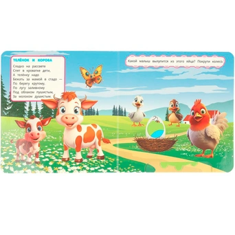 - подвижные элементы позволят играть с картинкой и вовлекут малыша в сюжет;