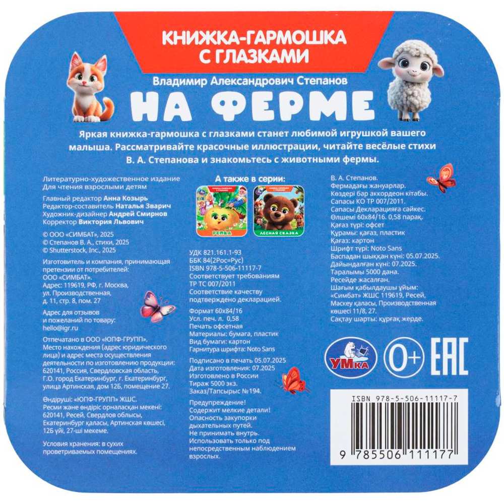 Книга Умка 9785506111177 На ферме. Степанов В. А. Книжка-гармошка с глазками