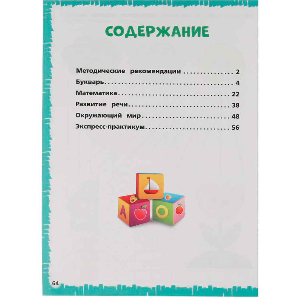 Книжка затрагивает различные темы с учётом возрастных особенностей детей: чтение, логику, окружающий мир, математика, развитие речи, тренировка навыков письма.