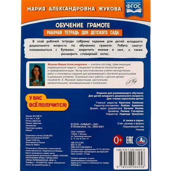 В этой тетради собраные интересные и полезные задания по авторской методике М. А. Жуковой. Упражнения дадут возможность малышу лучше усвоить знания о многообразии звуков и букв, станут хоршими помощниками в формировании фонетического слуха.