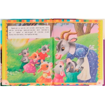 Крупный шрифт, поделенные на слоги слова, проставленные знаки ударения, разбитый на небольшие отрывки текст и красочные иллюстрации помогут малышу с удовольствием включиться в процесс чтения.