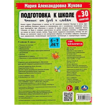 Книга Умка 9785506078876 Подготовка к школе за 30 занятий. Чтение: от букв к словам.6-7лет. Жукова М.А