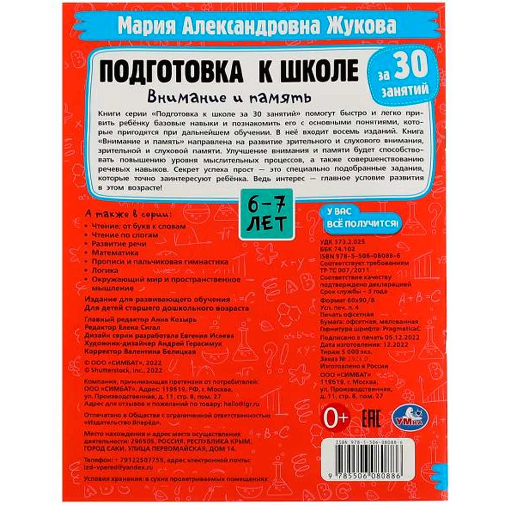 Книга Умка 9785506080886 Подготовка к школе за 30 занятий: внимание и память. 6–7 лет. Жукова М. А.