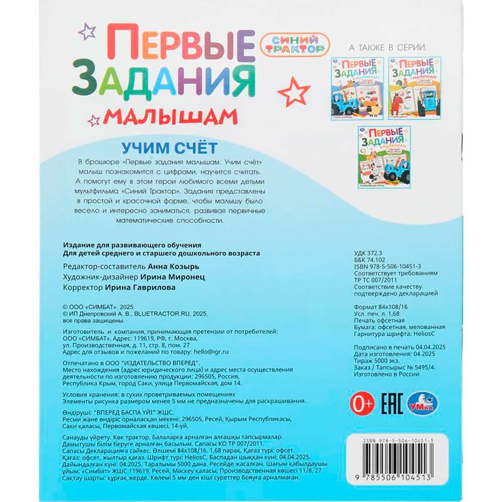 Брошюра «Синий Трактор. Учим цвета» из серии «Первые задания малышам» ТМ «УМка» - отличный вариант для развития ребёнка в игровой форме.