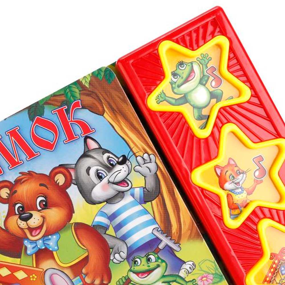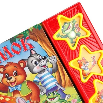 Книжка с тремя музыкальными кнопками расскажет веселые сказки. В книгу встроен звуковой модуль, который активируется при нажатии на одну из трех кнопочек. Кнопки большие, с красивыми рисунками и сделаны в виде звездочек, поэтому ребенку будет приятно играть с ними, пока взрослый читает ему книгу. Текст сделан крупным, чтобы дети постарше могли научиться читать его. Книга сделана из плотного картона и качественно иллюстрирована. Такую книгу будет очень интересно читать и разглядывать, а также развивать мелкую моторику и цветовое восприятие. Книга снабжена яркими красочными иллюстрациями. Книжка небольшого размера, ее очень удобно держать в руках. Издание имеет безопасный и удобный формат. Чтение способствует тренировке