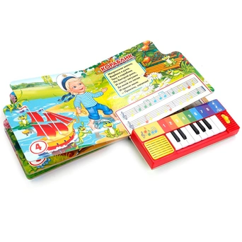 Книжка с музыкальным модулем и клавишами пианино позволит малышу занимательно провести время. Звуковой модуль активируется при нажатии на кнопки и позволяет прослушать веселые песенки. Клавиши пианино позволят ребенку проиграть мелодии самостоятельно. Текст сделан крупным, чтобы дети постарше могли научиться читать его. Книга сделана из плотного картона и качественно иллюстрирована. Такую книгу будет очень интересно читать и разглядывать, а также развивать мелкую моторику и цветовое восприятие. Книжка небольшого размера, ее очень удобно держать в руках. Издание имеет безопасный и удобный формат. Чтение способствует тренировке памяти, усидчивости, слухового и зрительного восприятия, мелкой моторики рук.