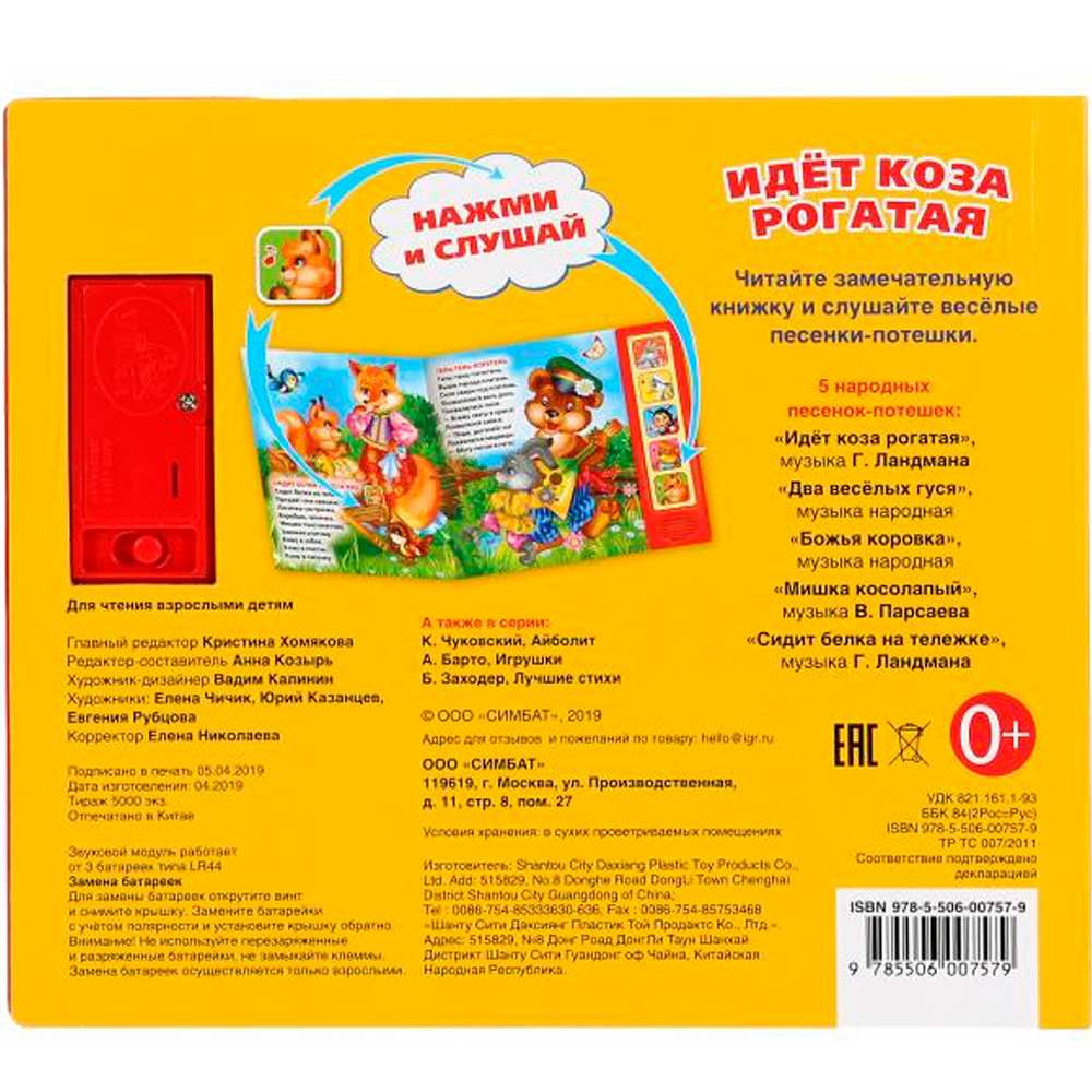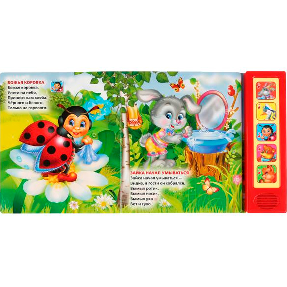 Книжка с музыкальным модулем содержит народные песенки и потешки для малышей. Звуковой модуль активируется при нажатии на кнопку. Текст сделан крупным, чтобы дети постарше могли научиться читать его. Книга сделана из плотного картона и качественно иллюстрирована. Такую книгу будет очень интересно читать и разглядывать, а также развивать мелкую моторику и цветовое восприятие. Книжка небольшого размера, ее очень удобно держать в руках. Издание имеет безопасный и удобный формат. Чтение способствует тренировке памяти, усидчивости, слухового и зрительного восприятия, мелкой моторики рук.