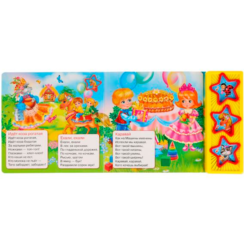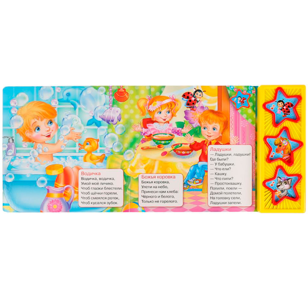 Красочная книжка - замечательный подарок, а музыкальная книжка интересна вдвойне. Книжка с музыкальным модулем содержит увлекательные стихи. Книга снабжена яркими красочными иллюстрациями. Книжка небольшого размера, ее очень удобно держать в руках. Издание имеет безопасный и удобный формат. Звездочки с изображениями героев при нажатии воспроизведут мелодии. Чтение способствует тренировке памяти, усидчивости, слухового и зрительного восприятия, мелкой моторики рук. Текст сделан крупным, чтобы дети постарше могли научиться читать его. Книга изготовлена из плотного картона и качественно иллюстрирована. Такую книгу будет очень интересно читать и разглядывать, а также развивать мелкую моторику и цветовое восприятие.