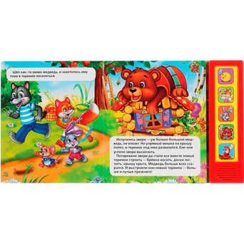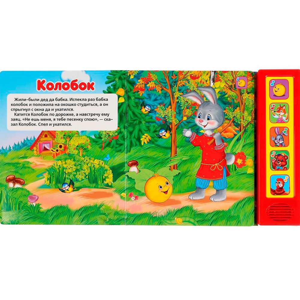 Красочная книжка с музыкальным модулем содержит обучающий материал. Звуковой модуль активируется при нажатии на кнопку. Изделие имеет 5 кнопок. Текст сделан крупным, чтобы дети постарше могли научиться читать его. Книга сделана из плотного картона и качественно иллюстрирована. Такую книгу будет очень интересно читать и разглядывать, а также развивать мелкую моторику и цветовое восприятие. Книжка небольшого размера, ее очень удобно держать в руках. Издание имеет безопасный и удобный формат. Чтение способствует тренировке памяти, усидчивости, слухового и зрительного восприятия, мелкой моторики рук.