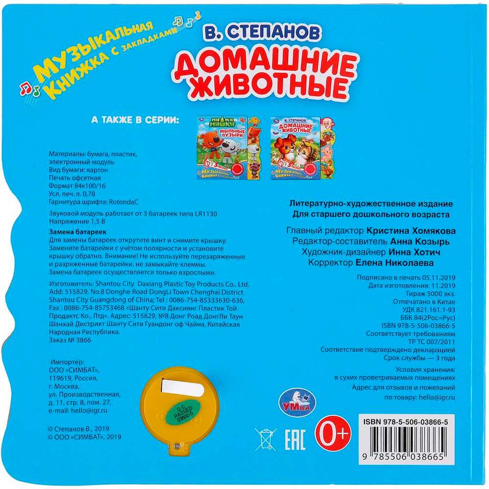 Книжка с музыкальным модулем содержит занимательные стихи и песенки.