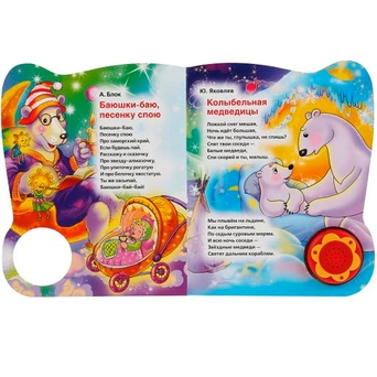 Книжка с музыкальным модулем содержит сказку и песенки. Звуковой модуль активируется при нажатии на кнопку. Текст сделан крупным, чтобы дети постарше могли научиться читать его. Книга сделана из плотного картона и качественно иллюстрирована. Такую книгу будет очень интересно читать и разглядывать, а также развивать мелкую моторику и цветовое восприятие. Книжка небольшого размера, ее очень удобно держать в руках. Издание имеет безопасный и удобный формат. Чтение способствует тренировке памяти, усидчивости, слухового и зрительного восприятия, мелкой моторики рук.