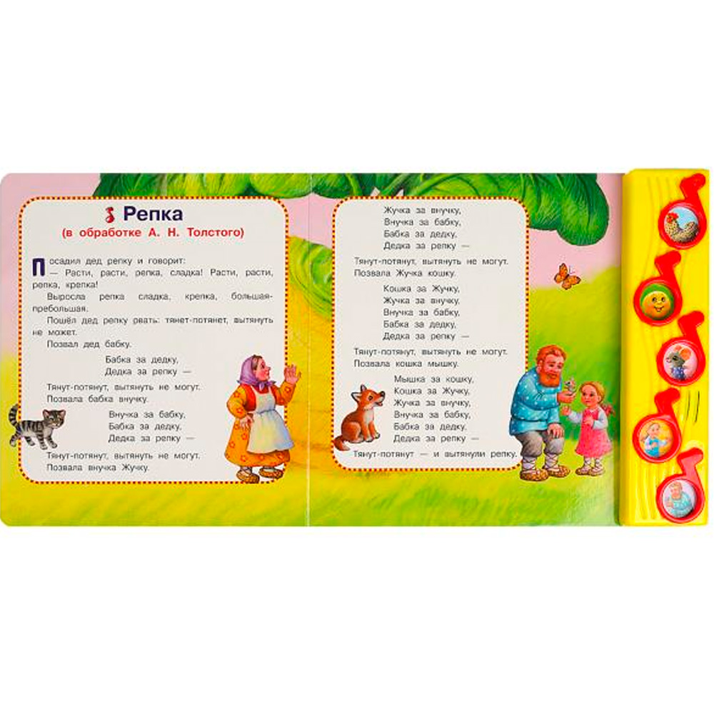 Книжка с музыкальным модулем содержит занимательную историю и 5 песенок.