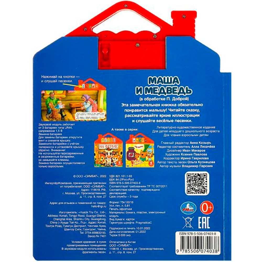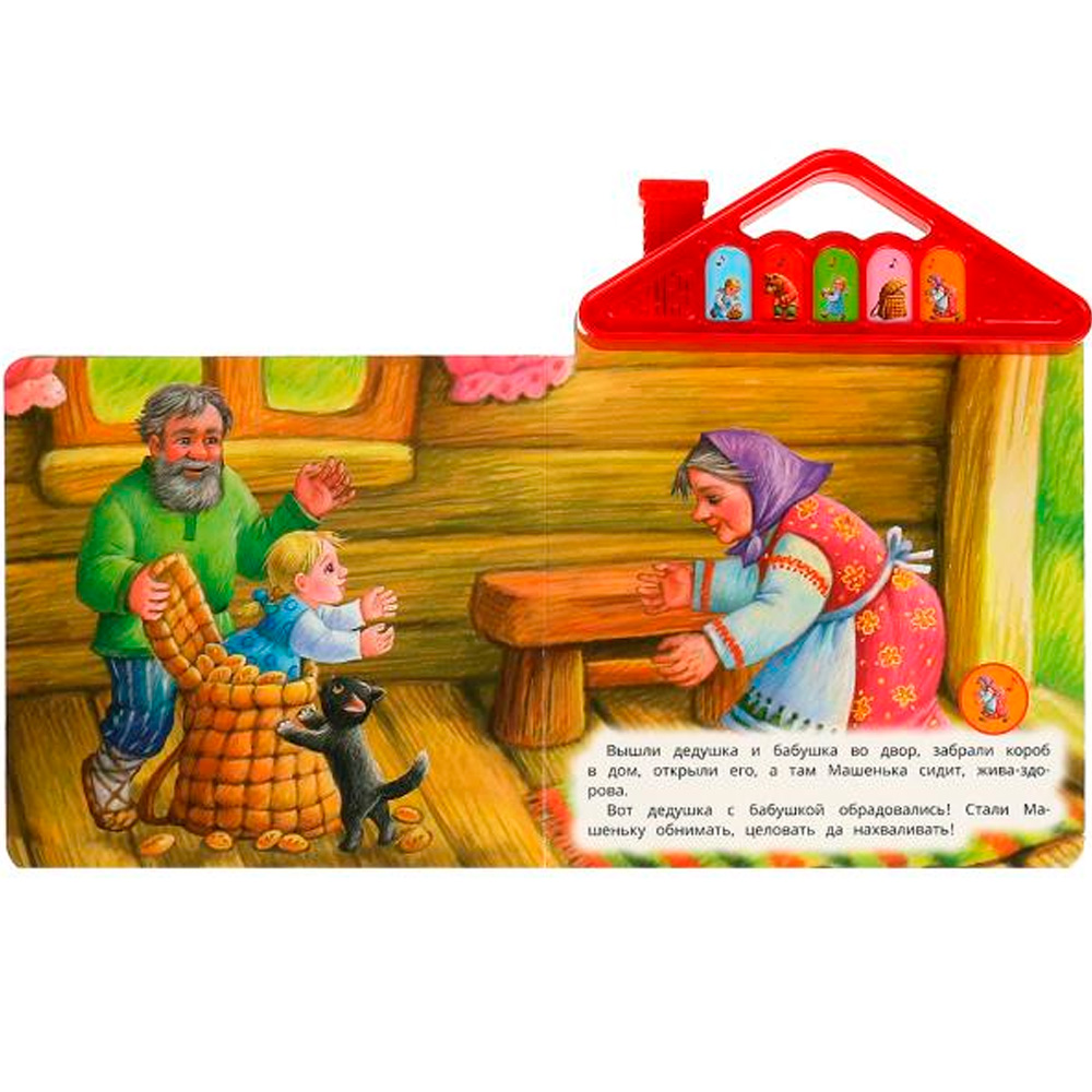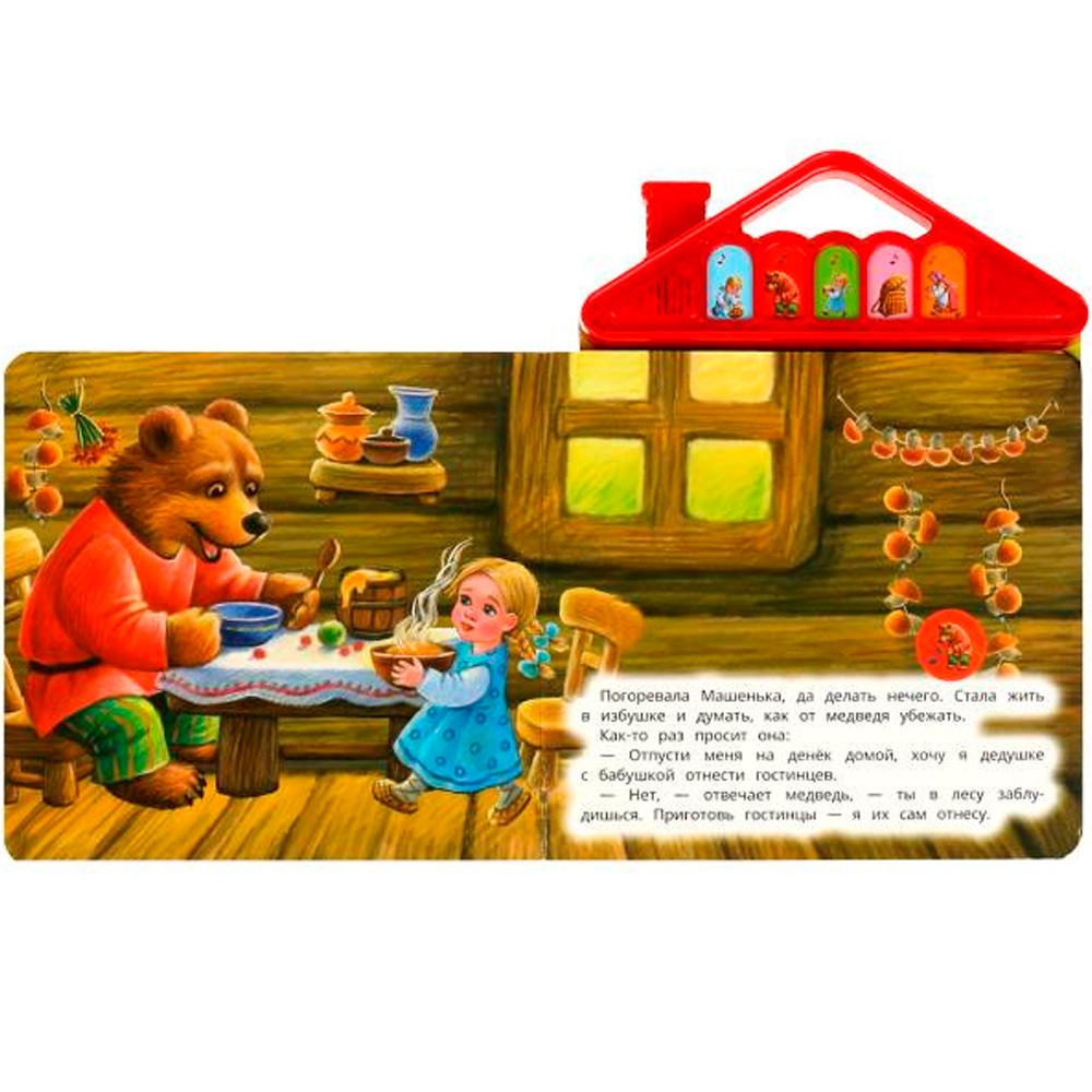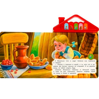 Книжка с музыкальным модулем содержит текст с картинками и веселые песенки.