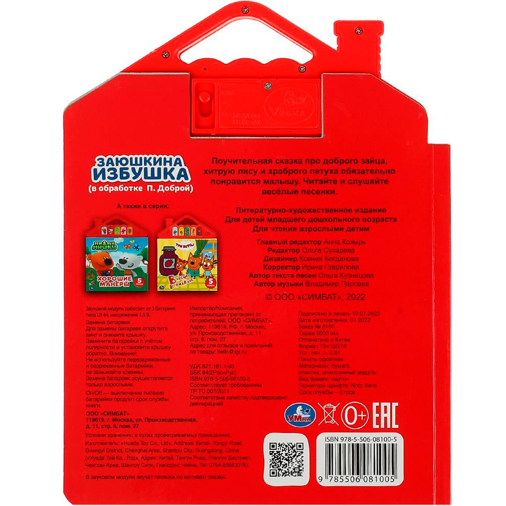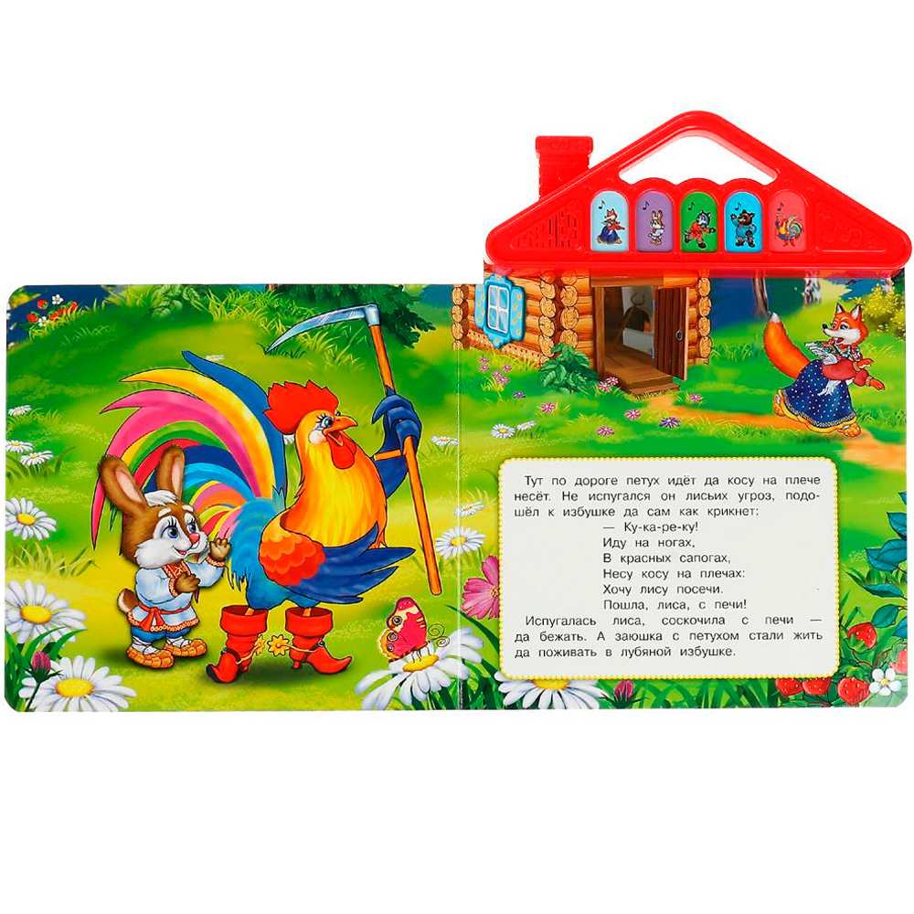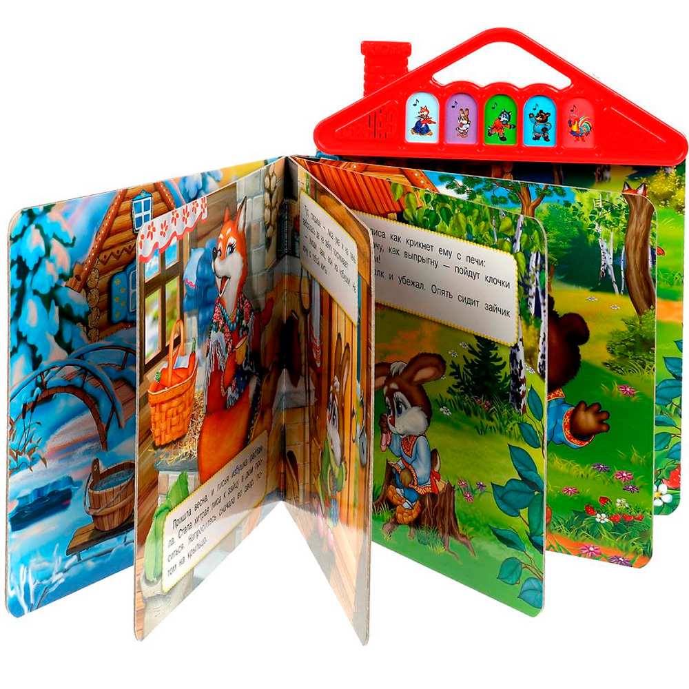 Книжка с музыкальным модулем содержит текст с картинками и веселые песенки.