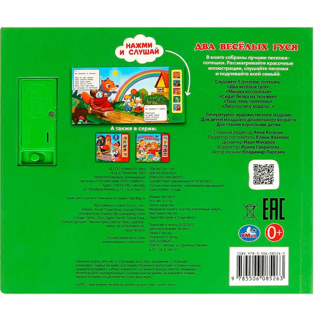 Книга Умка 9785506085263 Два весёлых гуся 5 кнопок 5 песен