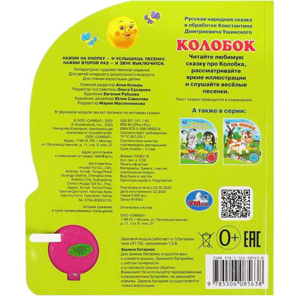 Книжка с музыкальным модулем содержит занимательную историю и песенки.