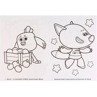 Раскраска с интересными персонажами понравится юным художникам. Она содержит картинки для раскрашивания карандашами, фломастерами или красками. Четкий контур обозначает границы рисунка. Бумага плотная - краски не будут протекать и просвечивать. Раскрашивание - увлекательный и полезный вид творчества, он станет первой ступенькой в обучении владения карандашом. В процессе раскрашивания дети получат представление о форме и цвете, познакомятся с различными материалами для раскрашивания. Будет развиваться зрительное восприятие, аккуратность и усидчивость, координация рук и мелкой моторики, что важно для полноценного развития ребенка. Раскрашивание картинок - отличный способ увлечь малыша и весело провести время.