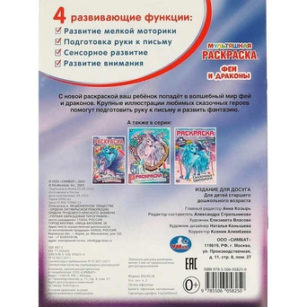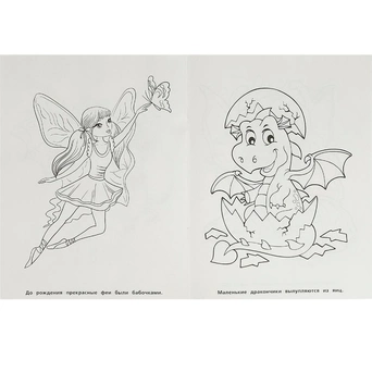 • Книжка содержит картинки для раскрашивания карандашами, фломастерами или красками.