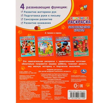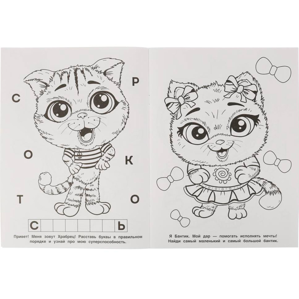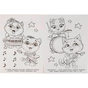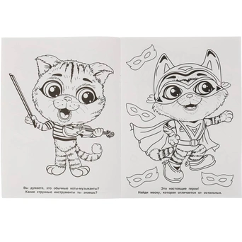 Мультяшная раскраска «Удивительные котята» отличный подарок малышу на любой праздник. Дети будят с большим интересом разглядывать и раскрашивать забавных котят.