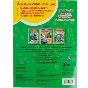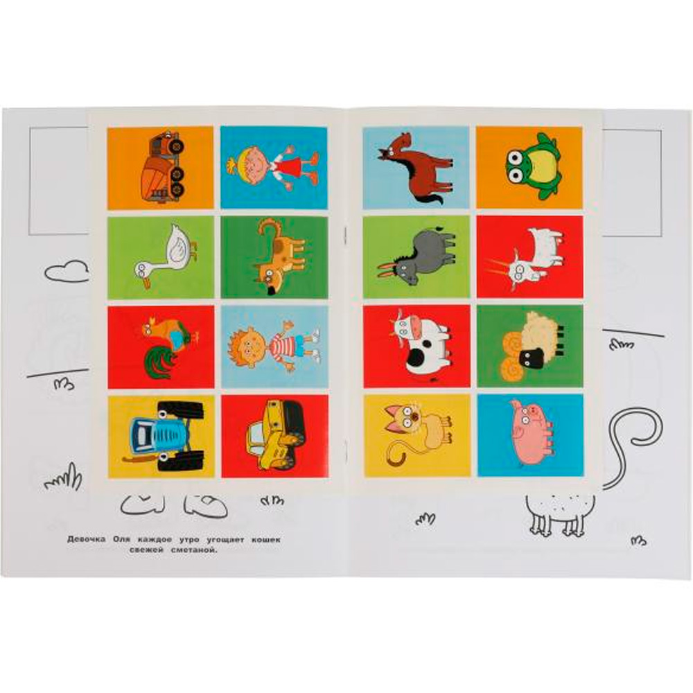 • Книжка содержит картинки для раскрашивания карандашами, фломастерами или красками.